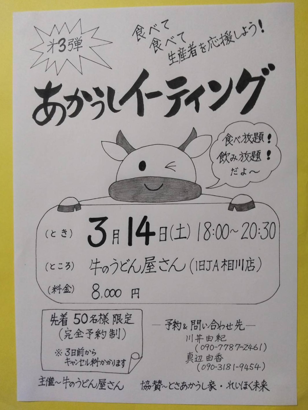 来月15日には、3回目の「あかうしイーティング」が開かれる予定です。