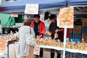 10月25日から27日にかけて、香美地区果樹青年部は「山北みかんフェスティバル」をとさのさとアグリコレットで開催しました。生産者自らが店頭に立ち、山北自慢の極早生みかんを1袋300円の特別価格で販売しました。