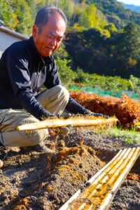 安田町の中山地区で12月10日に、特産のジネンジョの収穫が追い込みを迎えました!