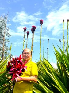 「ガイミアリリー」は2~4mの草丈と真っ赤な花びらが特徴で、花部分は人の顔よりも大きい40~60cmにもなる。生育には時間がかかり、種から育てると開花するまで5年から10年ほどかかります!