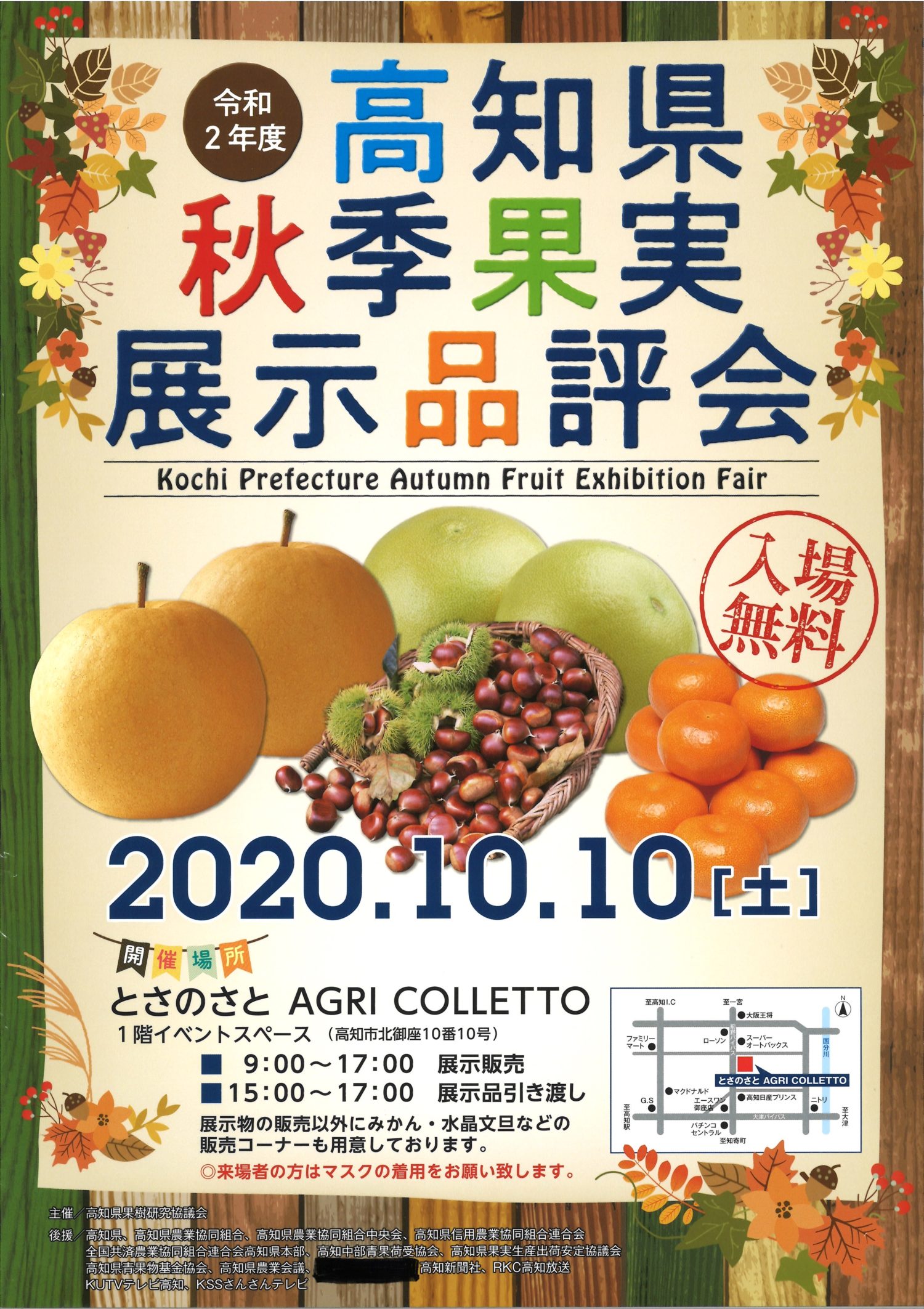 県内で果樹を栽培する生産者組織の高知県果樹研究協議会(事務局:JA高知県営農販売事業本部)は、とさのさとアグリコレット(高知市北御座)において、「高知県秋季果実展示品評会」を令和2年10月10日(土)に開催します。