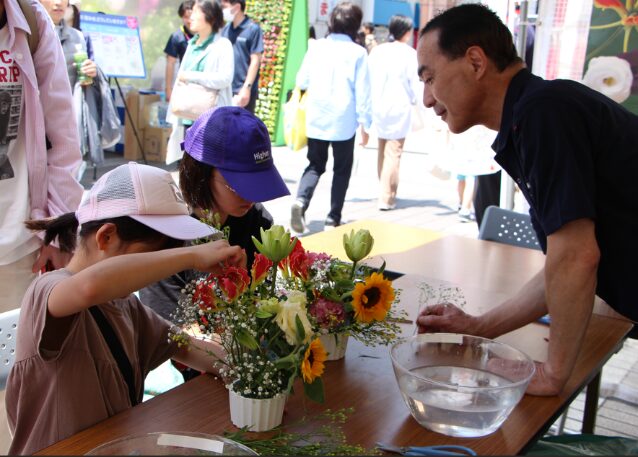小学生以下の子どもを対象(先着50名様・参加費500円)に、「ゆり」「トルコギキョウ」「オキシペタラム」「ソリダスター」など、高知県産の花を使ったフラワーアレンジメント作りを楽しんでいただきます。