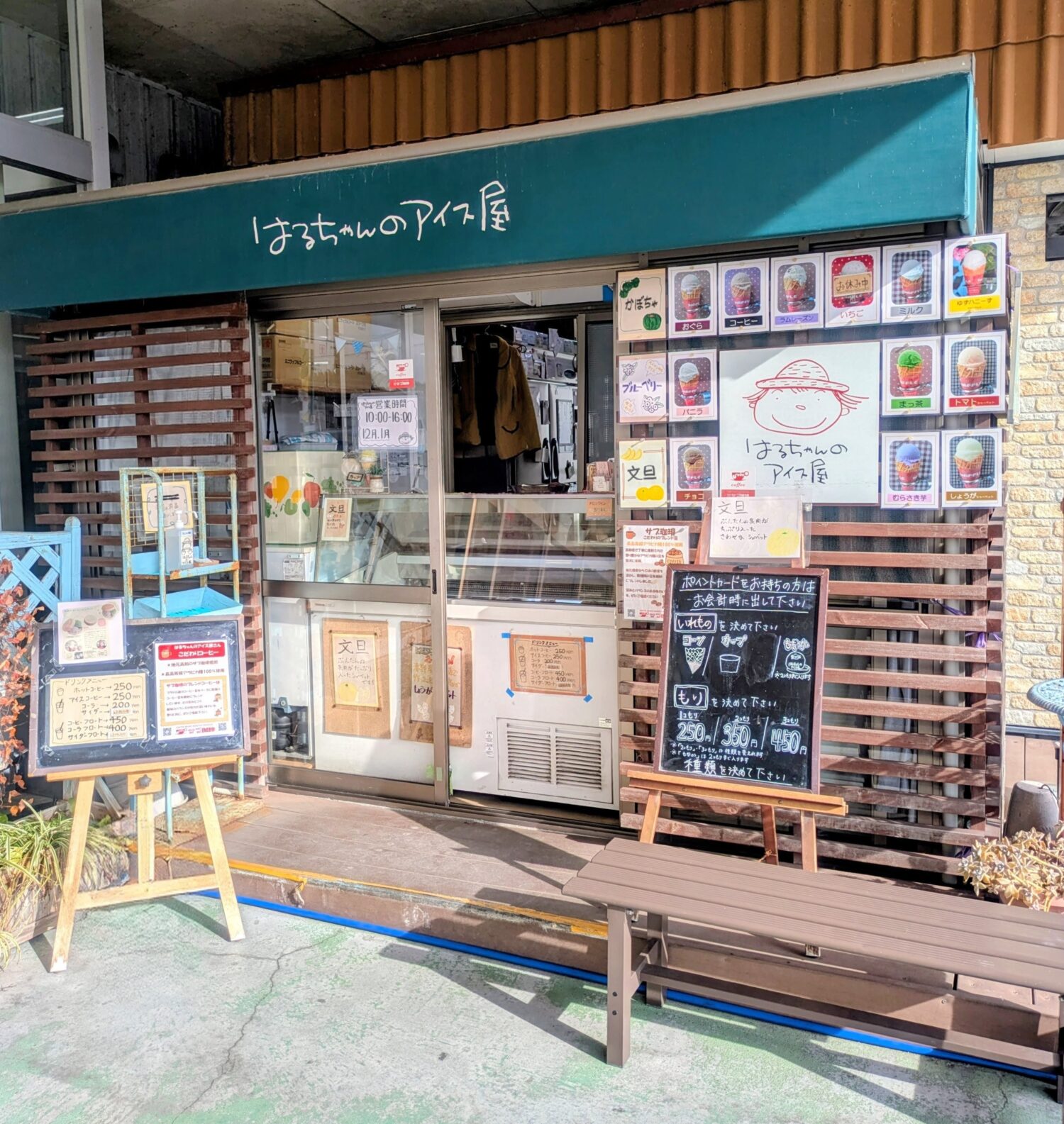 直販所「春の里」に隣接している「はるちゃんのアイス屋」では、バニラや抹茶などの定番フレーバーに加え季節に合わせたアイスを販売しています。